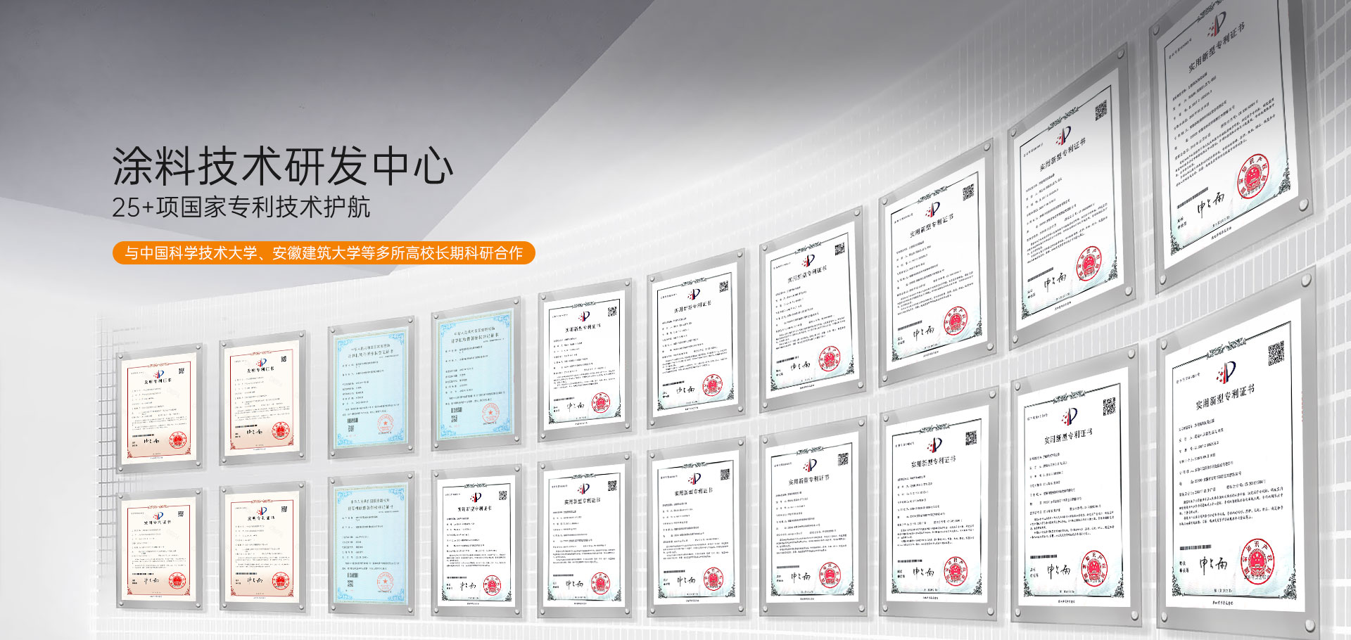 科創美設有涂料技術研發中心,和中國科學技術大學、安徽建筑大學等多所高校長期科研合作,成果豐碩,推出諸多新產品、新技術與配套施工方法,攬獲25項國家專利。同時,從材料源頭嚴格把控,保障產品穩定性,為項目品質護航。